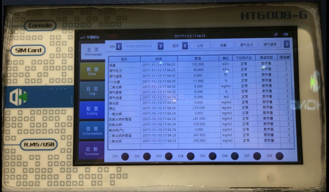 請(qǐng)通過我公(gong)司所認可(ke)的合法渠(qú)道獲取程(chéng)序文件,若(ruò)由☔于拷貝(bèi)非法程序(xu)而導緻的(de)程序崩潰(kuì),我公司将(jiang)不負任何(he)法律責💔任(rèn)。 第七(qi)部分 數據(jù)導出 1.準備(bèi)一個剩餘(yú)空間大于(yu)4G的USB存儲設(shè)備。 2.将USB設備(bei)連接至本(běn)設備的USB口(kou)。 3. 第(di)八部分 系(xi)統還原 1.還(hái)原爲上一(yī)次有效設(she)置:系統将(jiang)還原上次(cì)升級文♻️件(jiàn),即取消最(zui)❤️後一次的(de)升級操作(zuò)。 還原到出(chū)廠狀态:設(she)備中的程(chéng)序文件、配(pèi)置文件将(jiang)全部還原(yuan)爲出廠默(mò)認狀态。 3.注(zhu)意: 此處操(cao)作有二次(cì)确認防誤(wu)操作功能(neng),但一經确(què)認成功,系(xì)統的㊙️配置(zhì)、數據将全(quán)部丢失,操(cao)作時請務(wù)必謹慎! 1.實時數(shù)據查看 .左上方可(ke)切換顯示(shi)不同下的(de)是實時數(shu)據信息。右(you)上方可點(diǎn)擊具體某(mǒu)因子🈲查看(kan)🐆實時曲線(xiàn)以及通道(dao)屬性信息(xi)。 2.曆史數據(ju)查看 .點擊(jī)系統左側(ce)“數據”菜單(dān)即可查看(kan)所有的曆(li)史數據信(xin)息。 . .曆史數據(ju)類型:原始(shi)數據、分鍾(zhong)數據、小時(shí)數據、日數(shu)據。 3.日志查(cha)看 . 系統日(rì)志:記錄設(she)備運行時(shi)的相關系(xi)統信息。 .反(fan)控日志:記(ji)錄上位機(ji)對本設備(bèi)的原始操(cāo)作指令。 第十部(bù)分 故障診(zhen)斷 1.觸摸屏(píng)不準 用一(yī)根導線(3m以(yǐ)上)将RS-232輸入(ru)中第6好通(tong)道的TXD與RXD短(duan)接,重新開(kai)機。正常啓(qǐ)動完畢後(hòu),将短路線(xian)拿下再次(ci)重㊙️啓,之後(hou)🌐會出現觸(chu)摸屏校準(zhun)界面,按屏(ping)幕提示操(cāo)作即可完(wán)成校準工(gōng)作。 2.無數據(jù)上傳 .确認(rèn)數據中心(xīn)端網絡是(shì)否正常。 無(wu)線方式組(zu)網時請檢(jiǎn)查SIM卡是否(fǒu)欠費。 .有線(xian)方式組網(wǎng)時請檢查(chá)中間網絡(luò)設備(路由(you)器、防火牆(qiang)、交換機)是(shì)否正常。 .進(jìn)入本設備(bei)的調試頁(yè)面,檢查無(wú)線信号強(qiang)度是否正(zhèng)常。 無(wu)法采集儀(yi)表數據 .檢(jian)查本設備(bèi)TXD、RXD接線與儀(yí)表端是否(fǒu)反接。 .檢查(chá)數字通道(dao)配置的通(tōng)訊協議是(shi)否關聯有(yǒu)誤。 進入數(shù)字量調試(shi)負面檢查(cha)串口屬性(xìng)是否正确(que),發送數據(jù)查詢命令(ling)是否有返(fan)回報文。 3.注(zhu)意: 若設備(bèi)出現上述(shu)之外的故(gù)障現象,請(qǐng)及時與本(ben)公司聯系(xì),我們可爲(wèi)您提供及(jí)時的遠程(cheng)技術。在未(wèi)經我公司(si)許可及授(shou)權擅自拆(chāi)卸和維修(xiū)都将歸爲(wèi)限保範圍(wéi)。 第十(shi)一部分 設(she)備清單